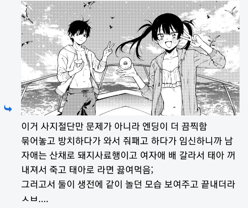 그리고 작성자분도 굳이 저런 만화를 즐기시거나 좋아하는 게 아니라면 이런 방식으로 반박할 필요도 없다고 생각됩니다. | 26.02.09 16:42 | | |