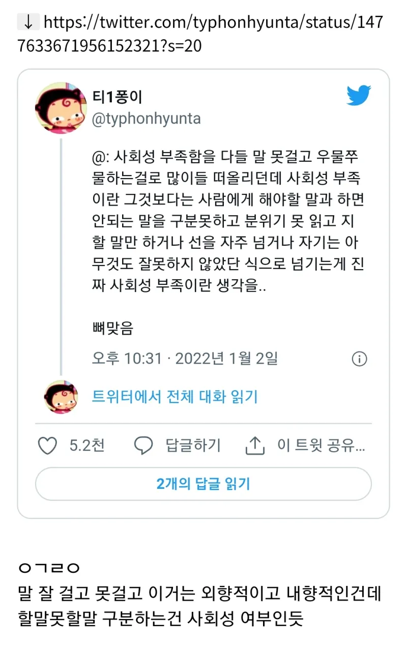 외향형이라 사람 많이 만나면서 사회적 지능이 성장못하는 인간이 있다는게 놀랍더라 | 26.02.11 17:28 | | |