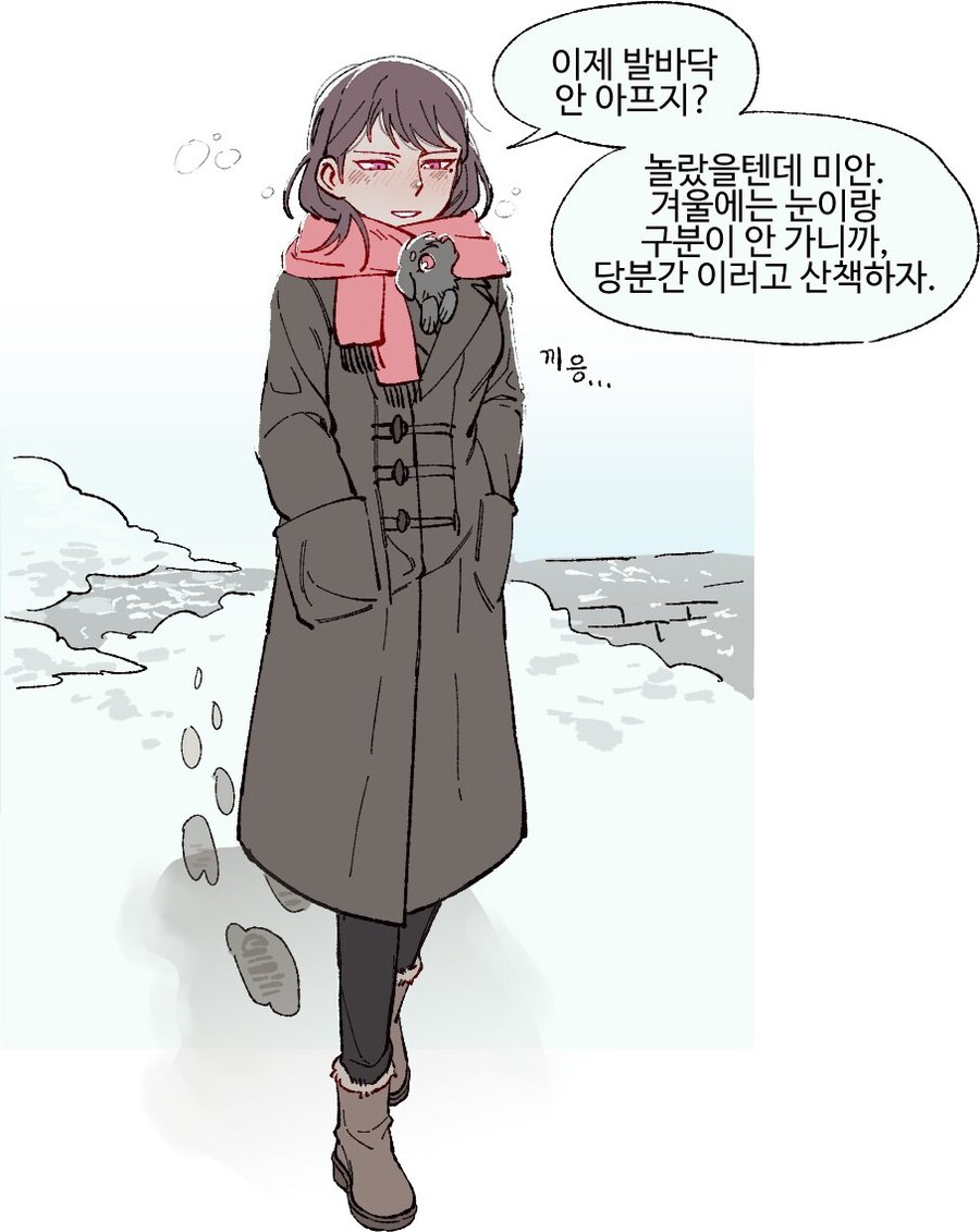 나도 똑같은데.. 요즘 염화칼슘 눈 온다고 예보 뜨면 미리 뿌려놓기도 해서.. 그냥 안 뿌려진 곳 찾아서 감. 산책이라고 하기보단 실외 배변 정도라도 시킨다 봐야겠네.. | 26.02.12 13:16 | | |