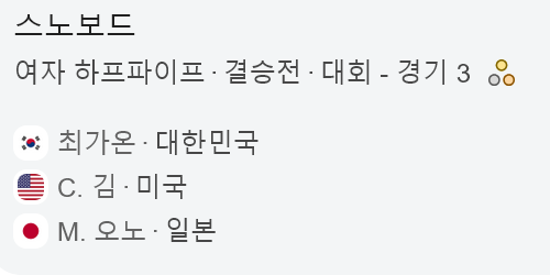 여성 하프파이프 금은동 한국, 미국, 일본 셋다 동아시아계가 먹었더라