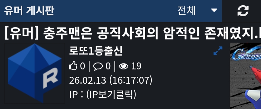 로또1등출신? 완전 쓰레기인듯 | 26.02.13 16:19 | | |