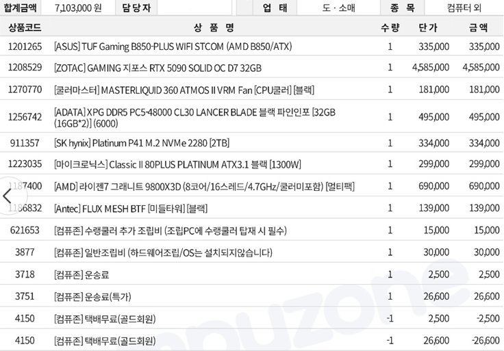 내가 작년여름에 5090완본체 삿는데 나름 중상급기인 뱅가드에 램64 박고 650이었음ㅋㅋ | 26.02.15 11:30 | | |