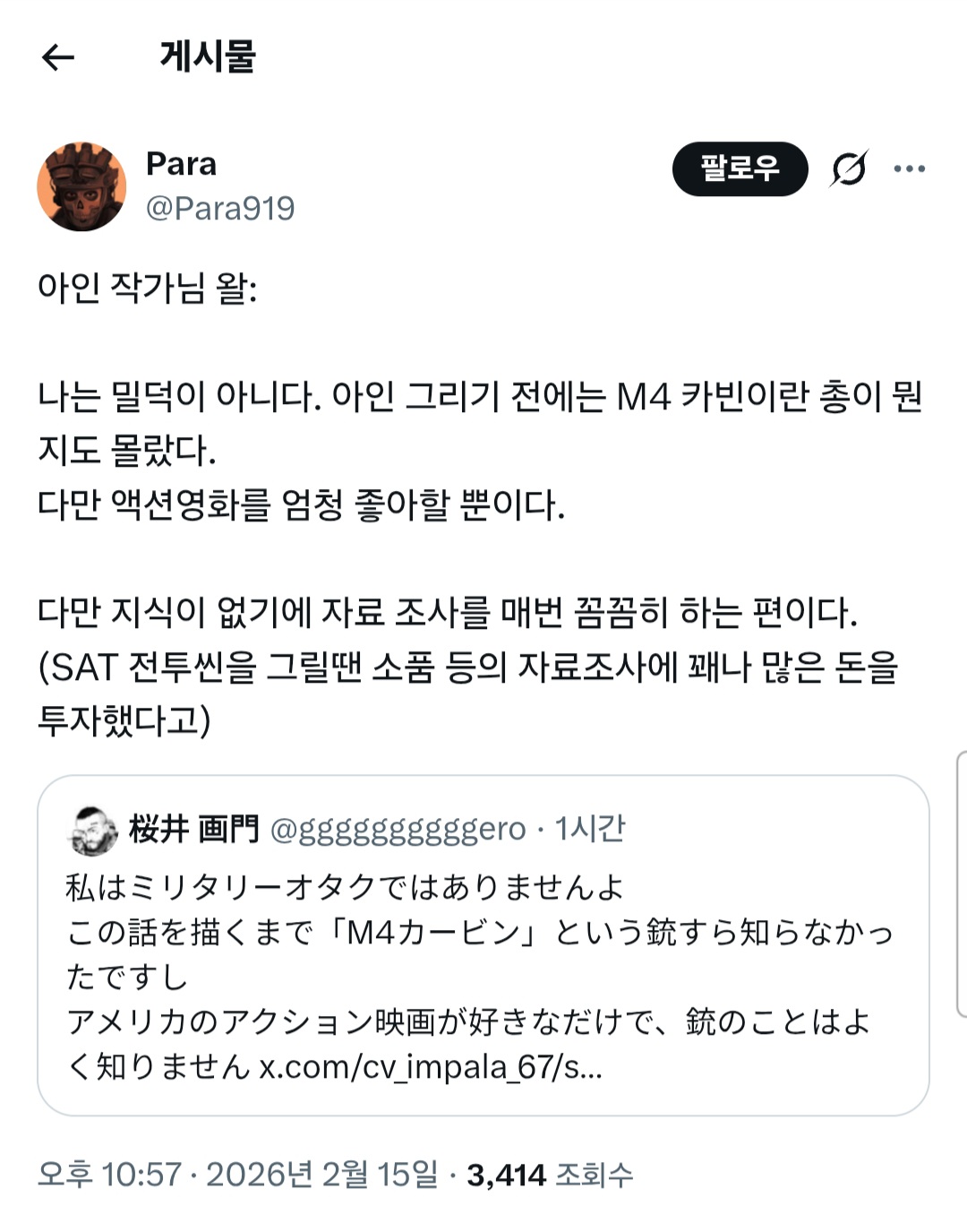 정확히는 아인이 다른 장르고 그쪽이 본업이라던... | 26.02.16 00:07 | | |