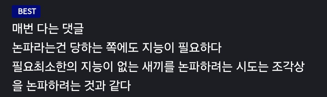 ㄹㅇ, 입 열어서 들을 놈이었으면 진작 교화 되었을 거. 그냥 입 닫고 조용히 인연을 끊어야지. | 26.02.16 15:19 | | |