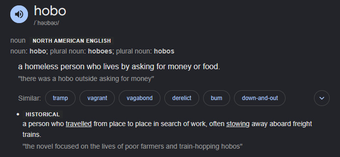 19세기 호보: 우린 노숙자 아니에요, 숙소도 있고 직장도 있어요. 21세기 영어권: 알겠다, 거지. | 26.02.16 15:46 | | |