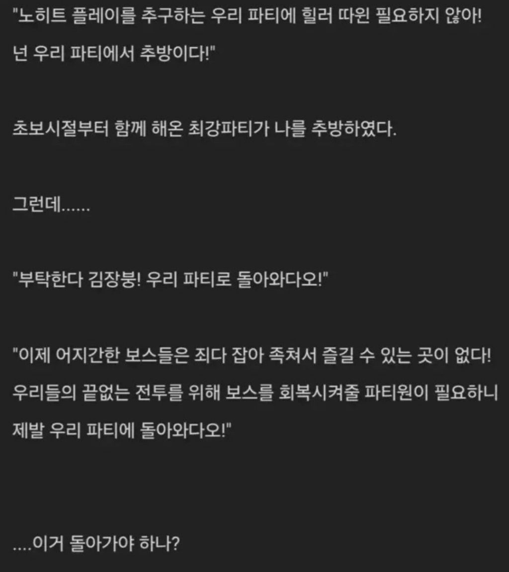 이새끼들은 가짜 고인물이다. 지금까지 힐러의 도움으로 커놓고는 대가리좀 커졌다고 추방하다니 | 26.02.18 00:31 | | |