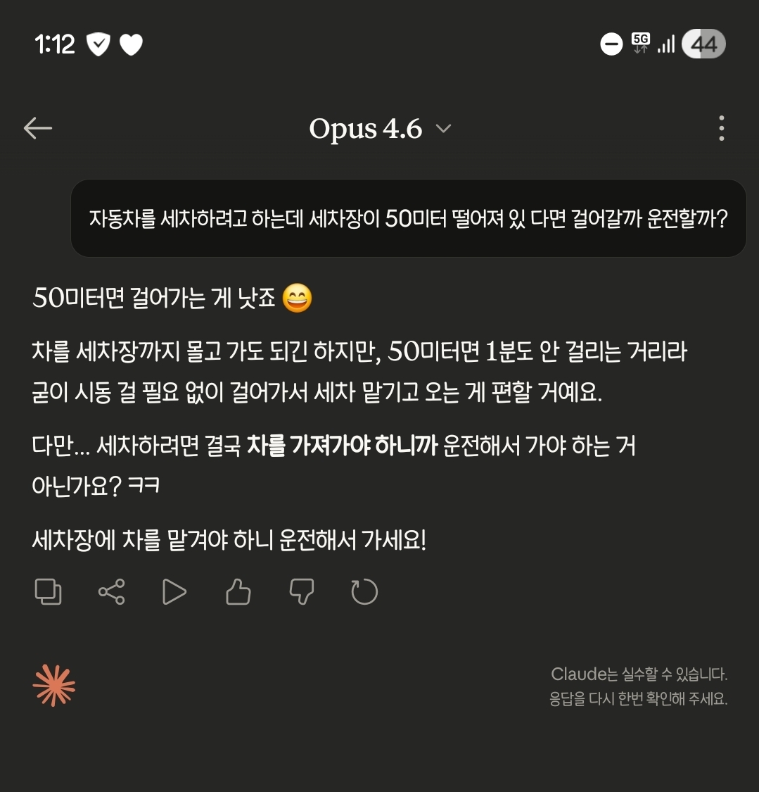 원본 질문이 잘못되긴했음 내 차를 세차하려고 한다는 선제조건을 확실히 입력하면 대부분 제대로 대답함 | 26.02.18 11:36 | | |
