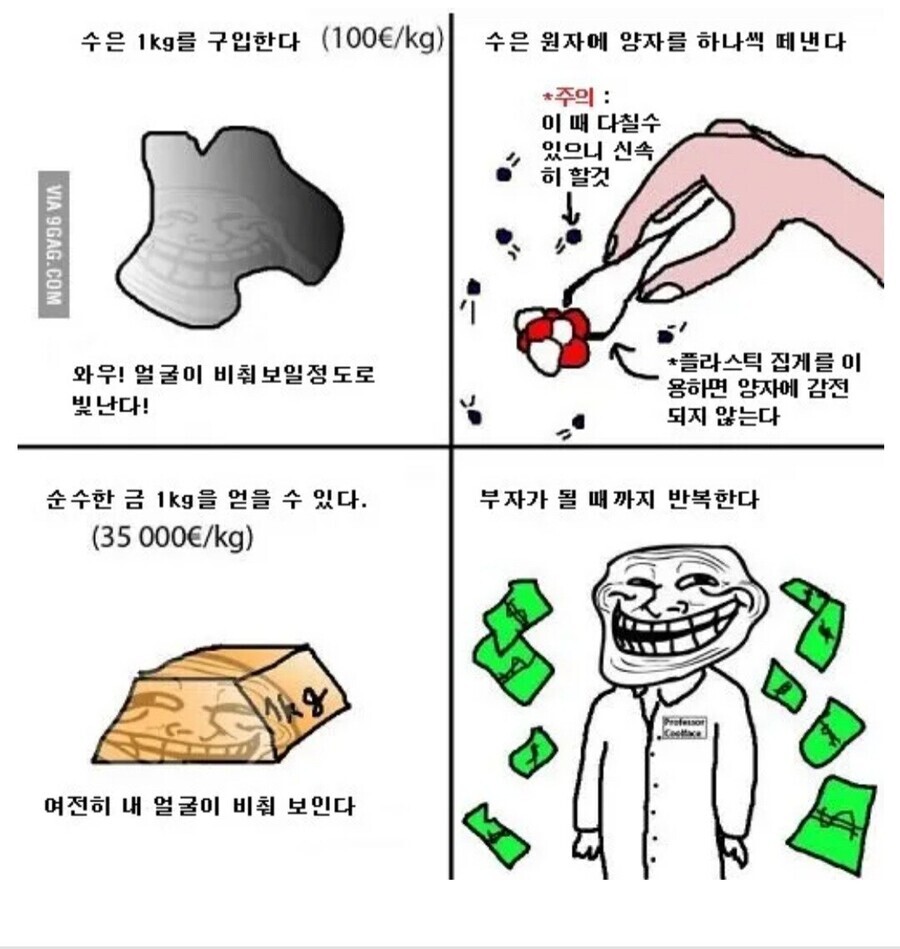 원래 연금술만 있으면 수은으로 금 만들기 쉬움. 저거 색 보니까 금물 싼거같은데 사실상 수은의 연장선이라 볼 수 있지