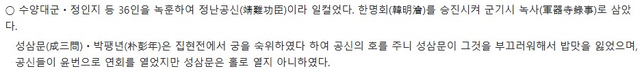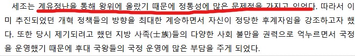 그리고 계유정난에 당시 신하들이 암묵적으로 동의한 원인을 태종 이방원 이래로 소수의 공신 세력과 고위 관료가 관직 독점해서라고 한 것도 썰이 아니라 학계 정설임.