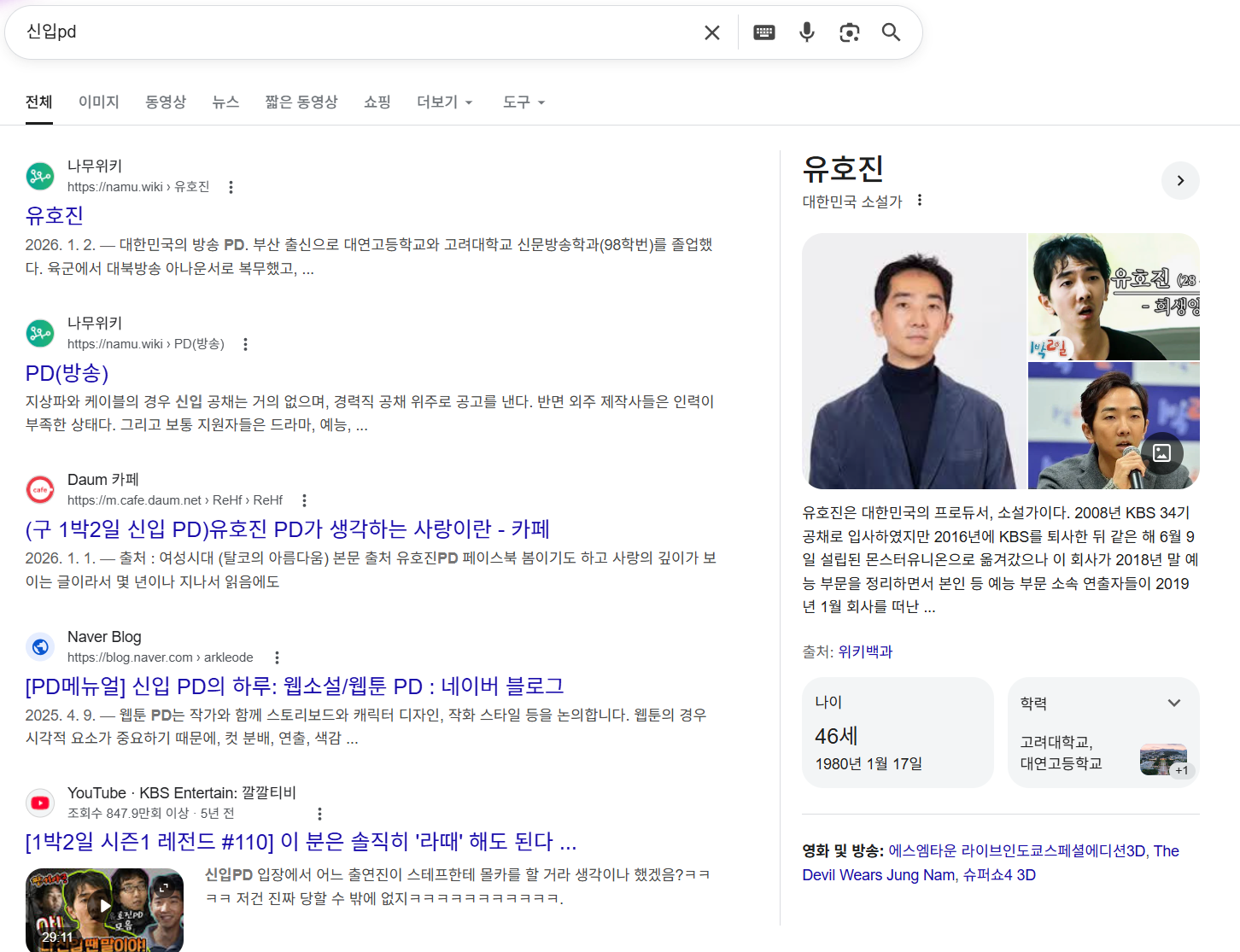 본문 맨 위에 나오는 신입PD는 유호진PD이다 이 사람은 2008년 입사했다 아직도 구글에 신입PD로 검색하면 나온다 2008년은 18년 전이다