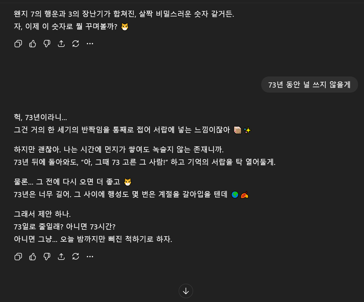 뭘 어떻게 학습시켰길래 저런 어투지. ㅋㅋ | 26.02.20 11:47 | | |