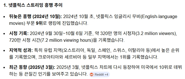 넷플릭스에서 뒤늦게 흥행한 걸로 봐서는 충분히 가능성 있는 이야기로 보임.