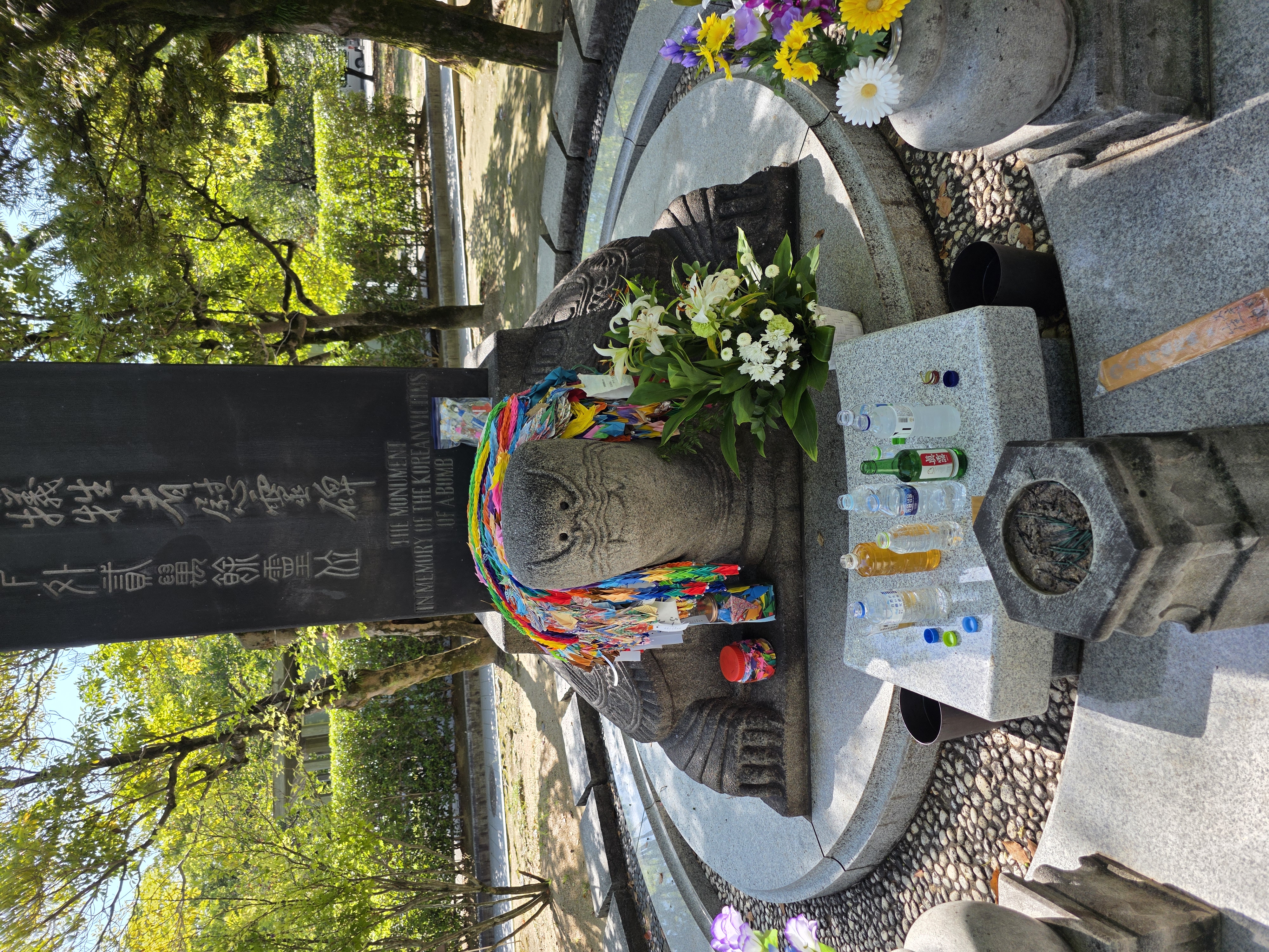 난 기념관은 안 들르고 평화공원이랑 원폭돔 둘러보고 한국인 위령비에 직접 가져온 진로소주를 바쳤다