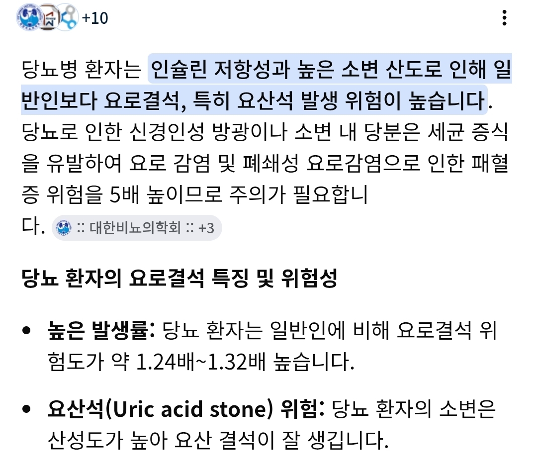 당과 뇨가 만나서 초반응을 일으켜 요로결석 올순 있대 ㄷㄷ