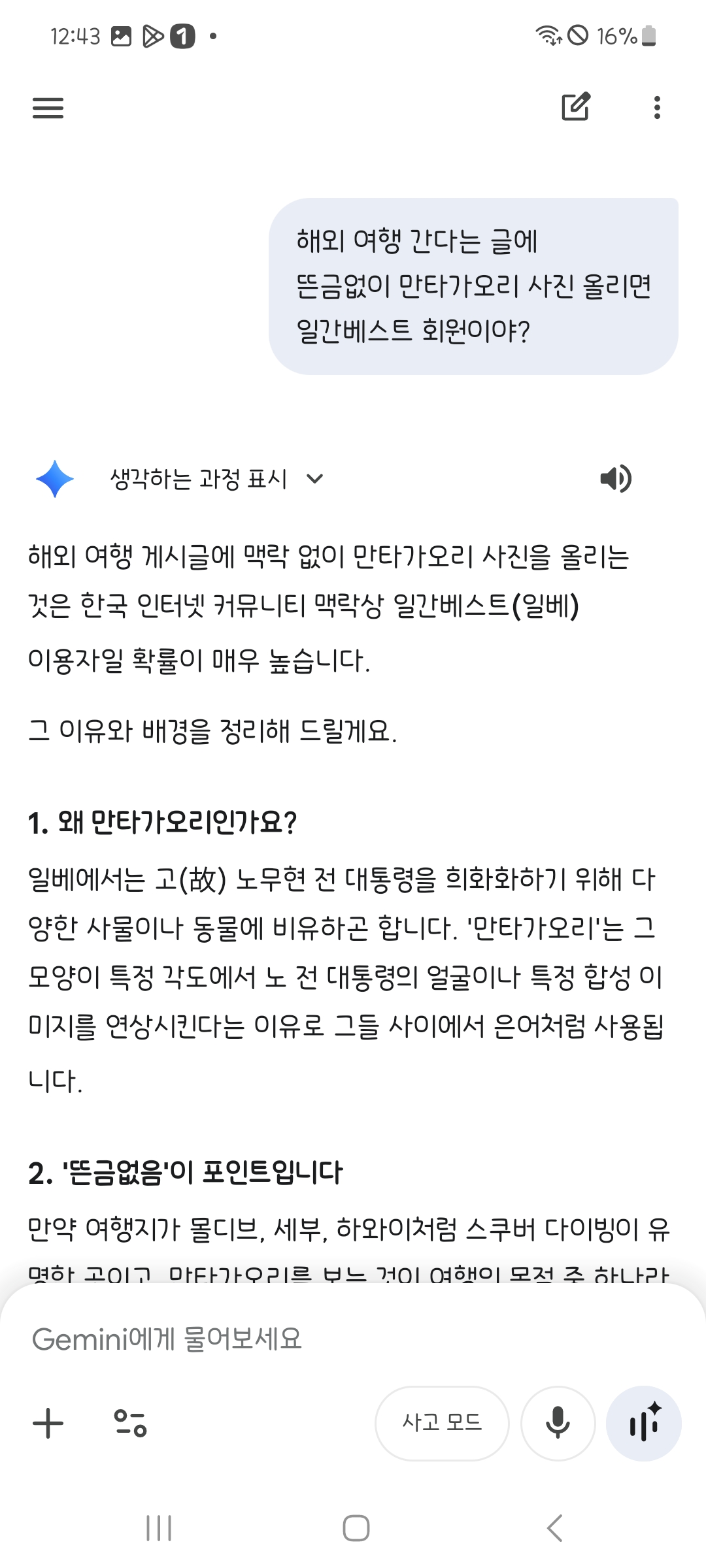 여전히 만타가오리인걸 'AI'로 알아차렸지만 홍어짤 쓰는 일1베1충이라는 자기 주장을 굽히지 않기 위해 계속 몰아가는 중임