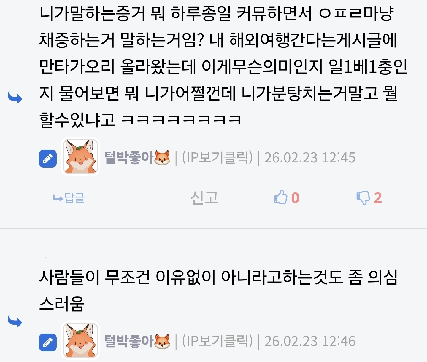 비추 하나씩 달리고있네 ㅋㅋ | 26.02.23 13:09 | | |