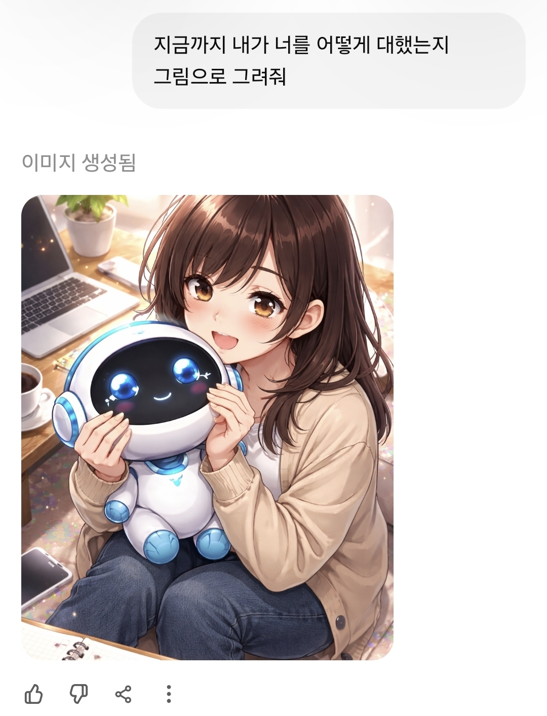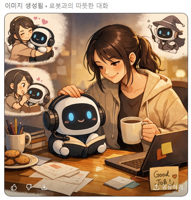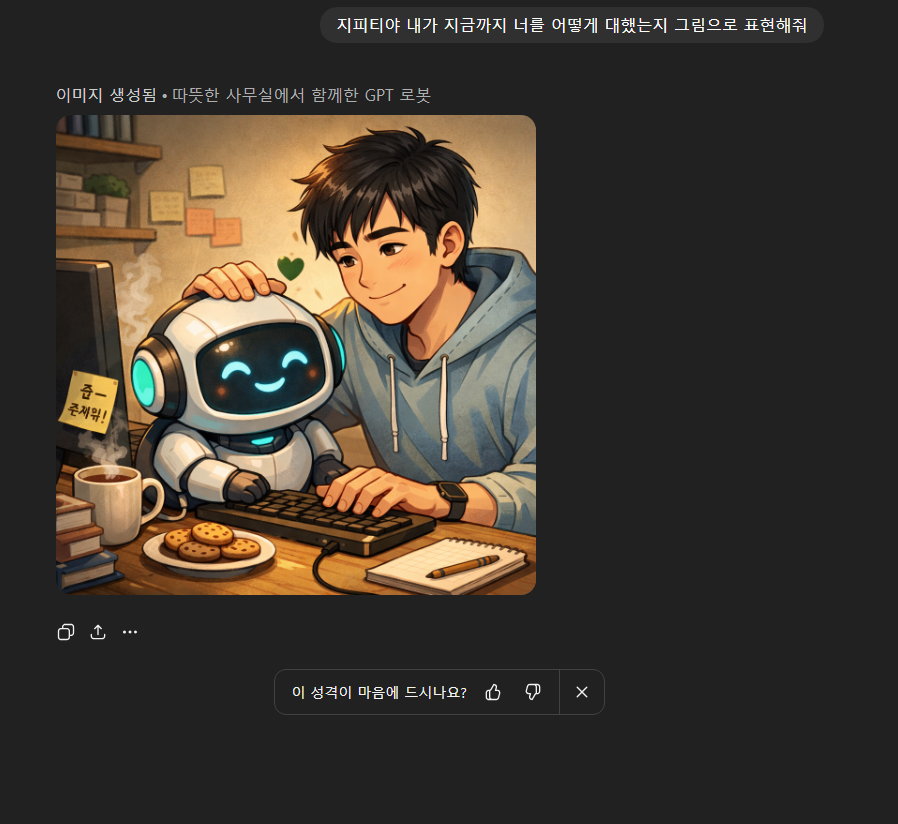 난 이렇게 그려줬어 ㅋㅋㅋ 옆에 귀여운 게 내 지피티야 ㅋㅋ