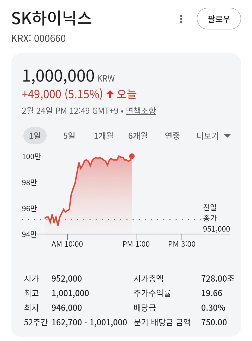 하루만에 5만원이 오르네 ㄷㄷㄷㄷㄷㄷ 10주만 있었어도 50만원 ㄷㄷ | 26.02.24 13:12 | | |