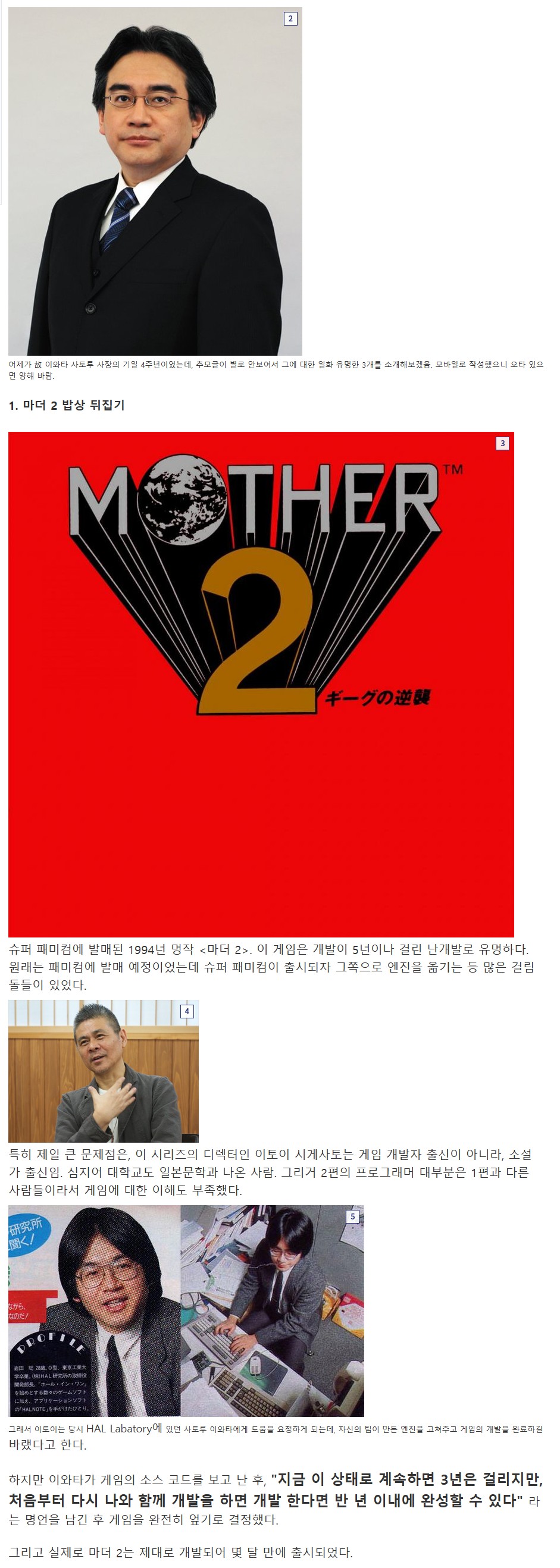 ㅡㅡㅡㅡ 포켓몬과 언더테일의 기반이 되는 게임인 마더시리즈 역시 이와타의 업적중 하나...