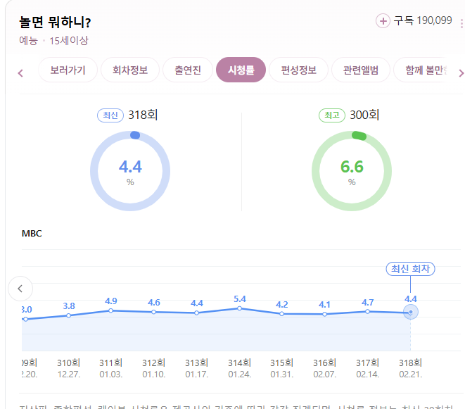 여기서 오랫만에 박명수 정준하 나와서 무도 느낌 난다고 좋다고 물빨한 놀면뭐하니는 끽해야 4퍼이구만 | 26.02.26 14:07 | | |