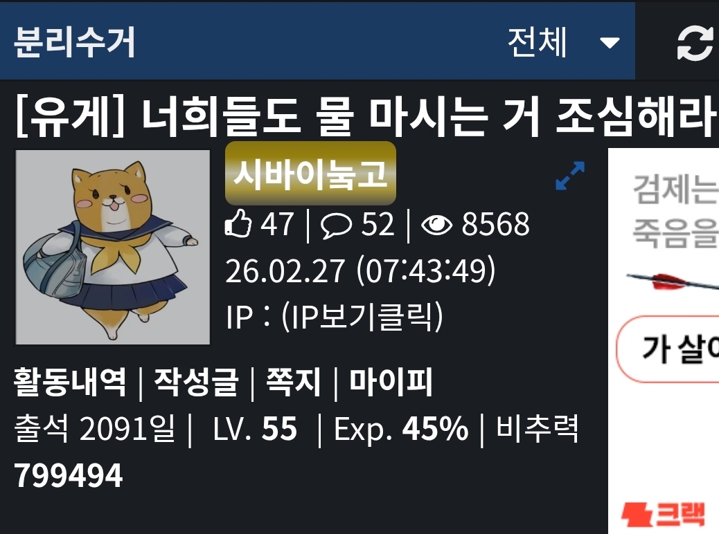 방금 유게 켰는디 | 26.02.27 08:05 | | |