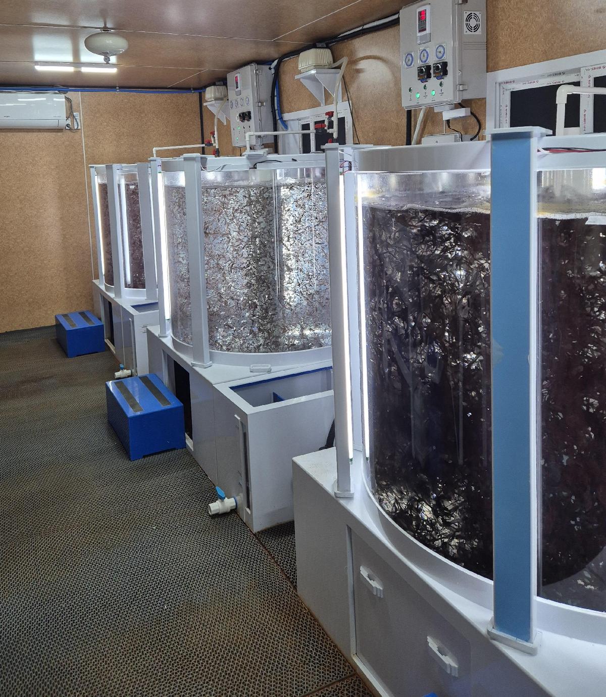 이런 식으로 육지 탱크에서 키우는 양식김도 시도해보고 있는 중