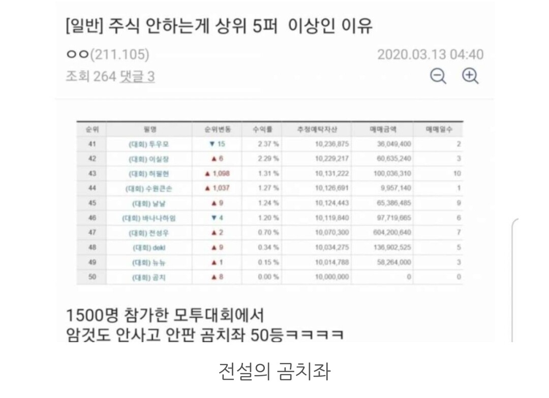 요즘 예금충 운운하던 걔하고 다를 것도 없는 말 하는 놈들 널린 거 보면 걔네들 중에서 진짜 수익 난 놈 얼마인 가 싶음
