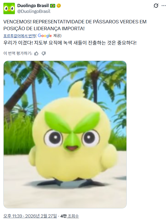 나도 보자마자 '왠 듀오링고가..' 이 생각했는데 역시 반응 했구나 ㅋㅋ