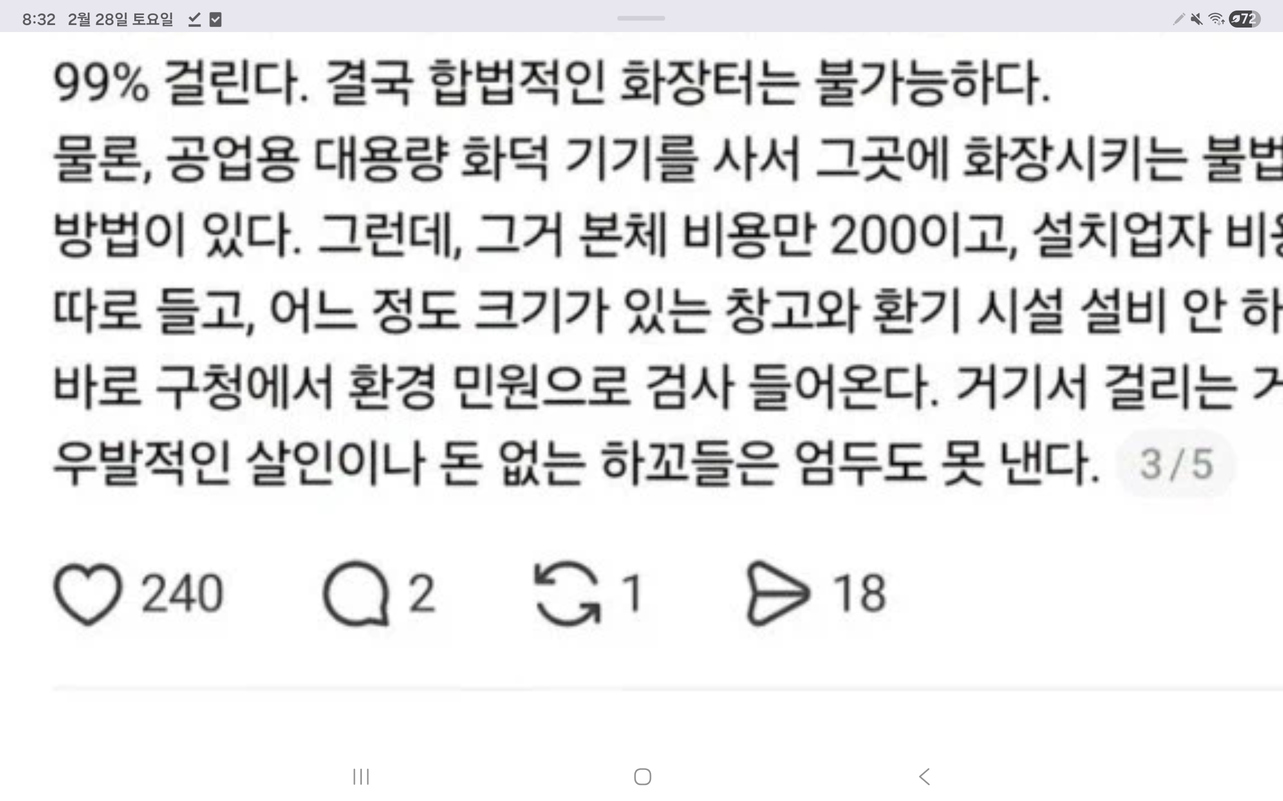 그나마 그게 제일 확률이 높지만 처리하는게 문제라 그것도 쉽지 않음. | 26.02.28 20:41 | | |