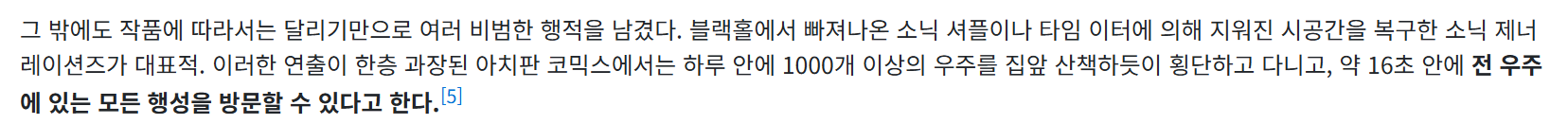 소닉이 워낙 이거저거 나오다보니까 제대로 설정 통합은 안된거같은데 그중에 최고 속도를 보면 광속은 넘은것같네