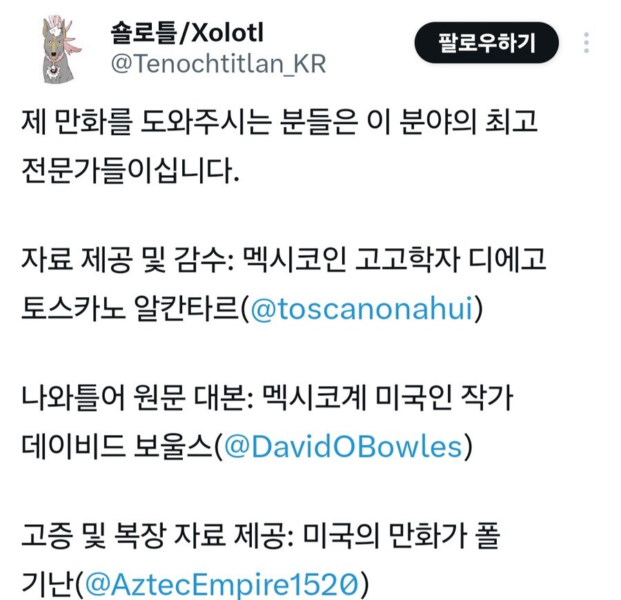 그래서 '아즈텍에 대한 모든 나쁘고 미개한 이미지는 침략 정당화를 위한 스페인의 음해와 누명'이라 주장하는, 정치적 사안으로 역사를 봐야한다고 열성적인 인간들은 도리어 마찬가지의 이웃이었고, 식민지가 되고나선 스페인측에 대한 협력의 댓가로 사회적으로 상당한 지위를 누린 틀락스칼텍 사람들에 대한 건 의도적으로 쏘~~~옥 빼놓고 외면함. | 26.03.01 22:19 | | |