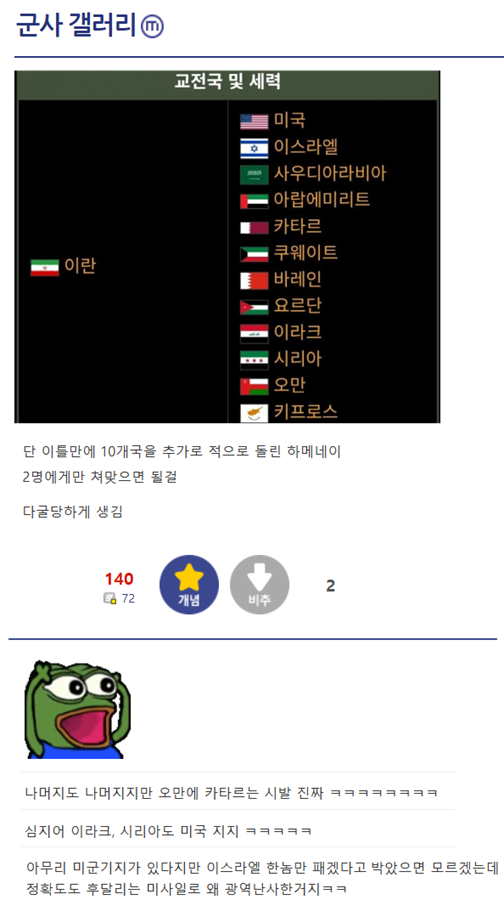 지금 미국이랑 이스라엘이 ㅈㄴ 포격 중인데 뭔소리임 | 26.03.02 14:00 | | |
