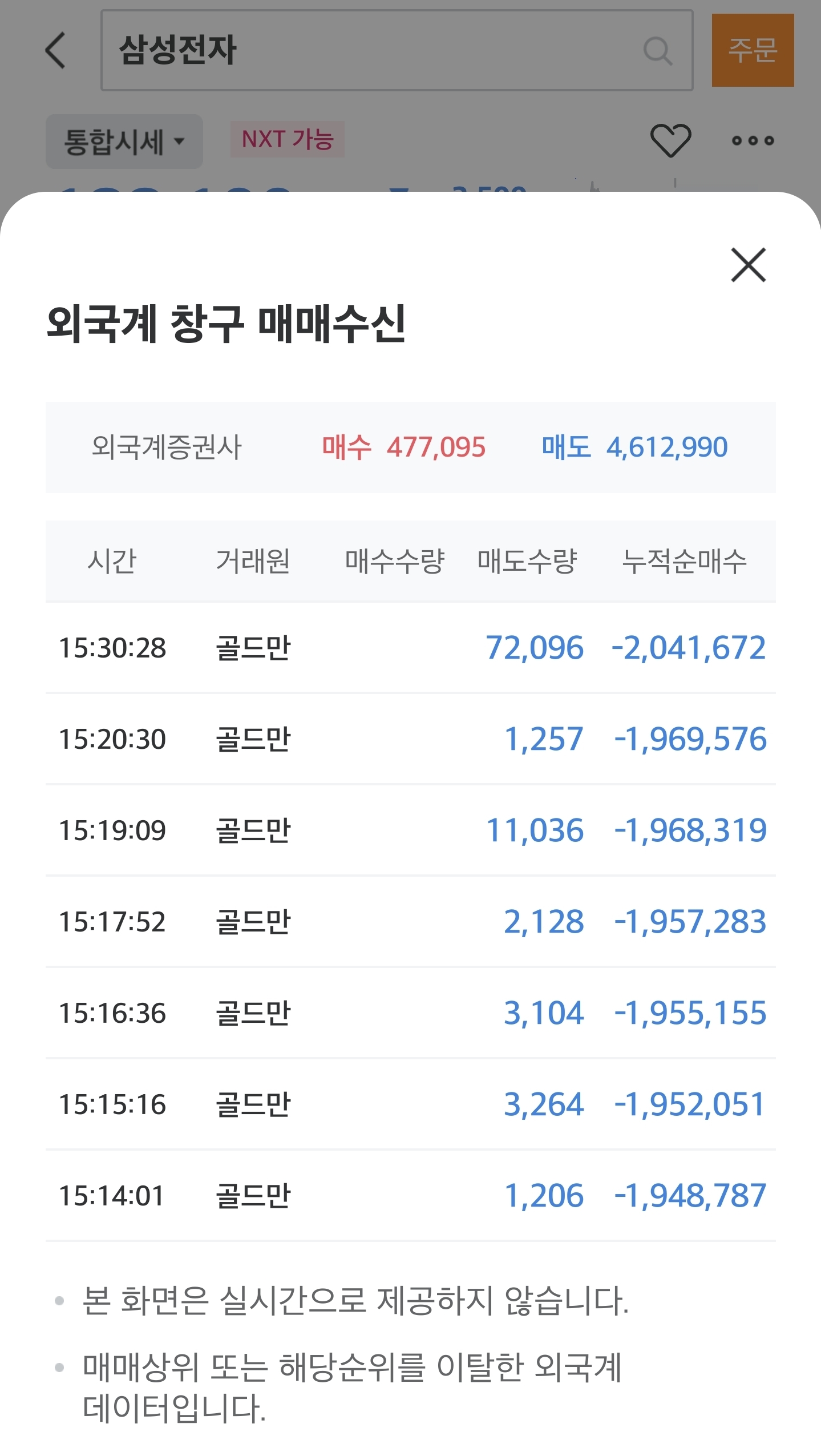 갓 수제로 찍어온 삼성전자 외국인 매매기록임 | 26.03.06 17:53 | | |