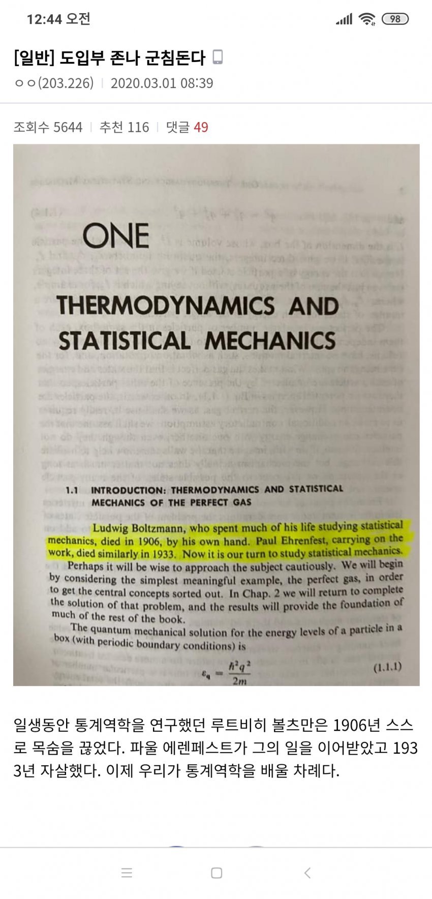 열역학 제 2법칙 하자마자 저 분 생각났음 ㅋㅋㅋㅋ | 26.03.08 01:37 | | |