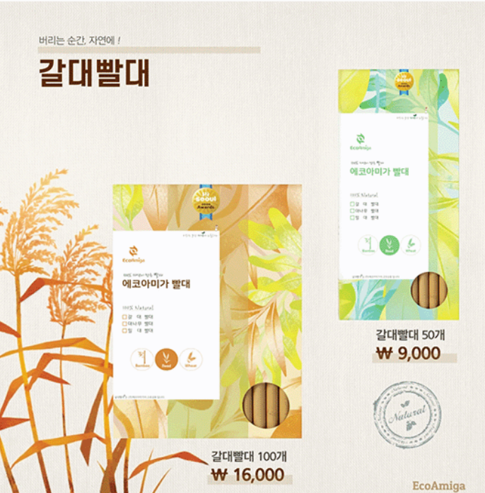 자연 재료 사용한 빨대가 괜찮은데, 개당 가격이 100원 넘어가는 물건이라 친환경 매장 아니면 막 사용하긴 부담됨.