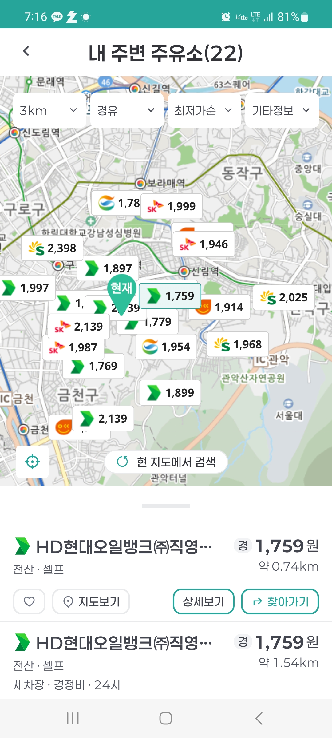오늘 주유소 가격 어떻나 보자