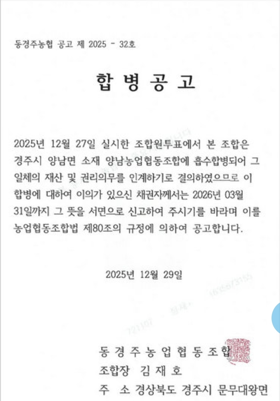 애초에 단위농협이면 '계' 같은거라 더 그런듯 https://www.ynenews.kr/news/articleView.html?idxno=36801 | 26.03.10 08:56 | | |