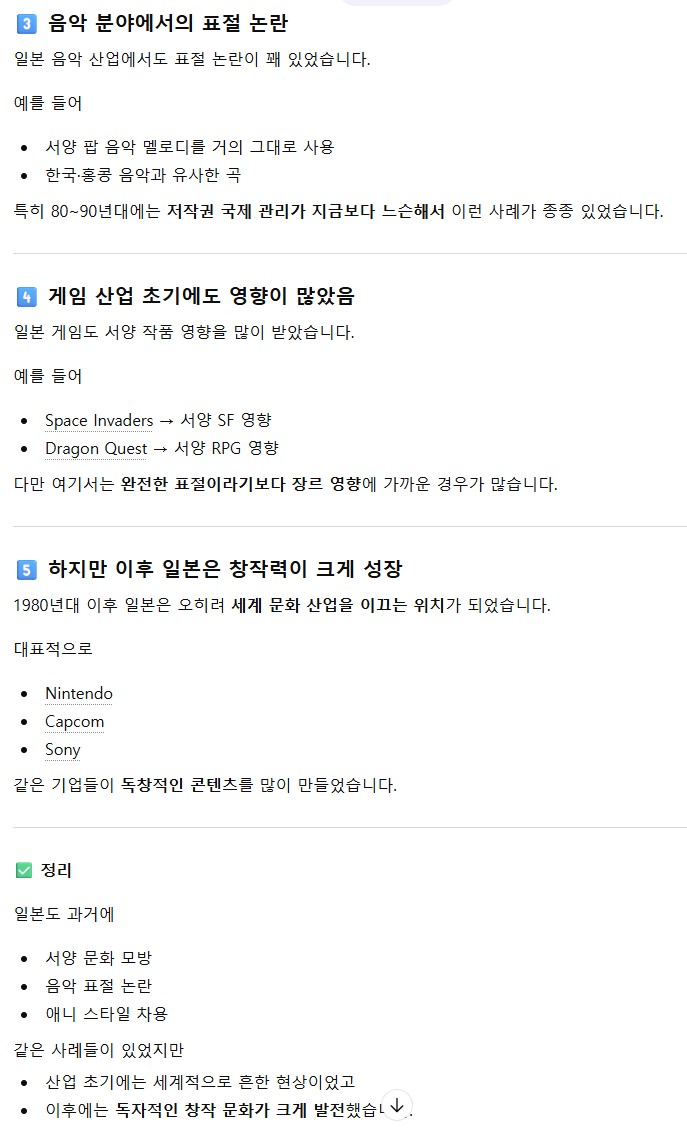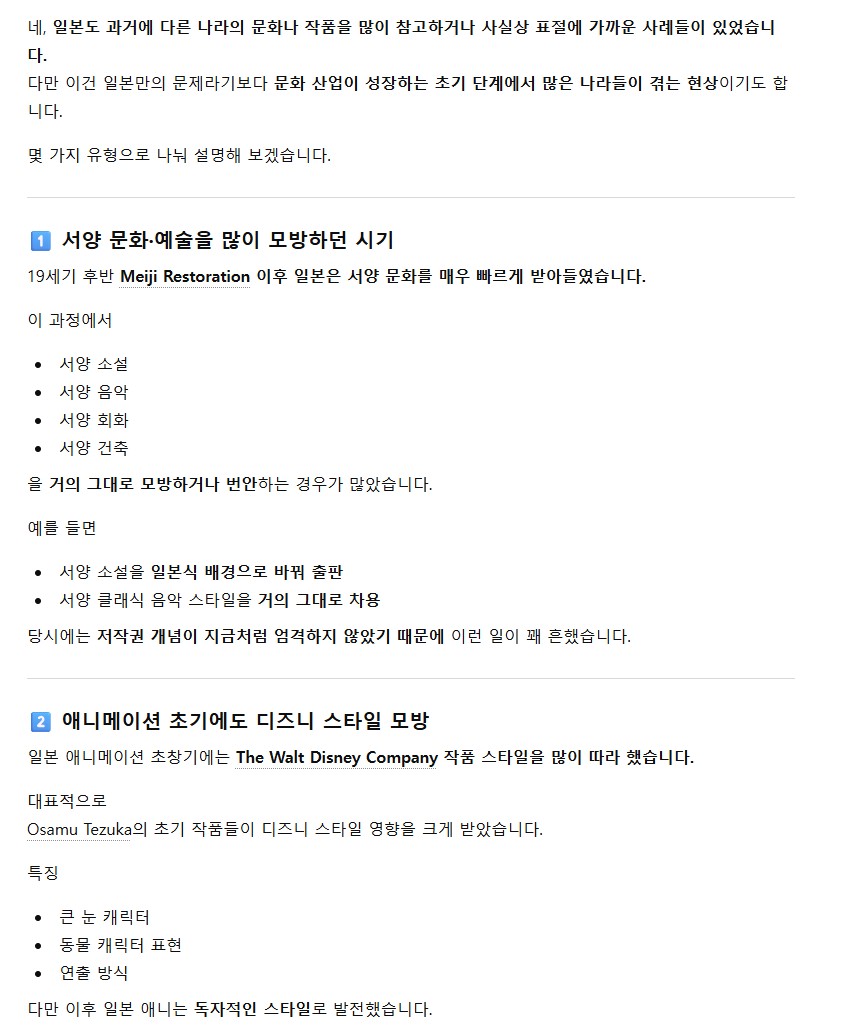 사람들이 일본은 뭐 되게 창의적이고 독자적인 컨텐츠들만 만들어왔던 이상향의 나라로 생각하는 경우가많은데 일본도 초기에 엄청 배꼈음.. 단지 그 시기가 우리나라보다 오래전이어서 그런 사실이 잘 안알려졌고 잊혀져서 그런거뿐임. 그냥 일본이든 한국이든 문화가 싹트기 시작하는 초기에는 다른나라의 우월한 문화,문명을 배끼는건 당연한 현상임. | 26.03.10 17:29 | | |
