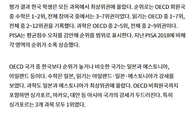 막상 OECD 학업성취도 평가(PISA) 보면 그렇게 문해력이 떨어진것도 아님