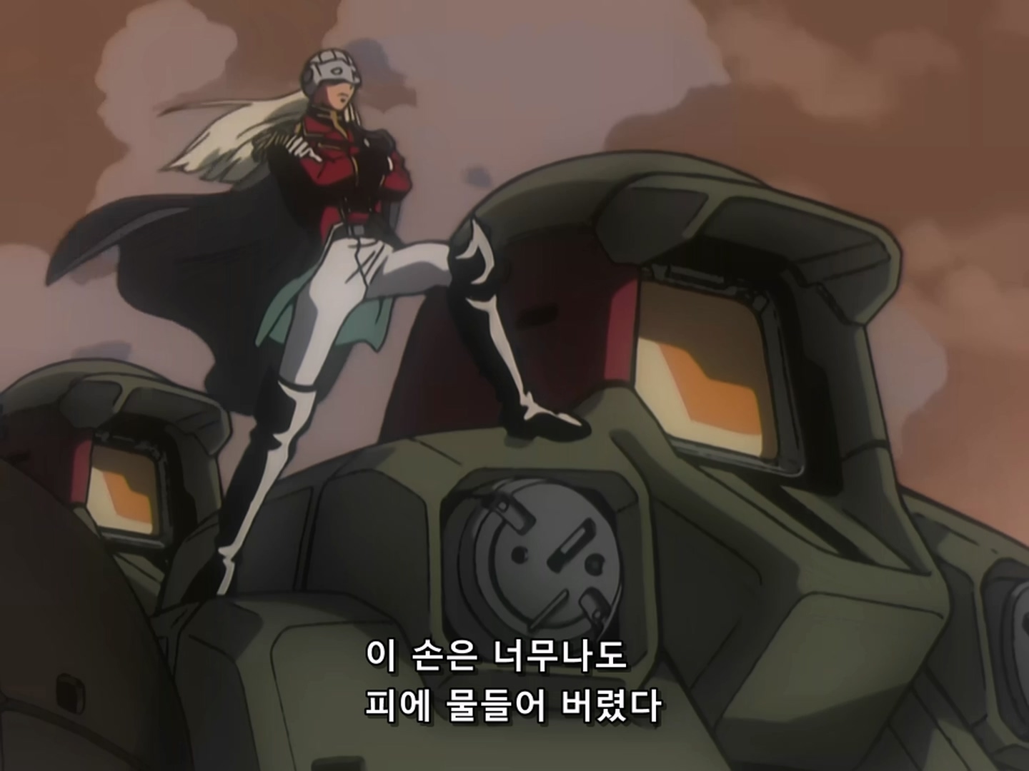 "다음엔 자네의 특기인 MS전으로 승부를 내자" "젠장" 최종결전 "다른 무장은 쓰지 않는건가?" "정정당당하게 싸우겠다"