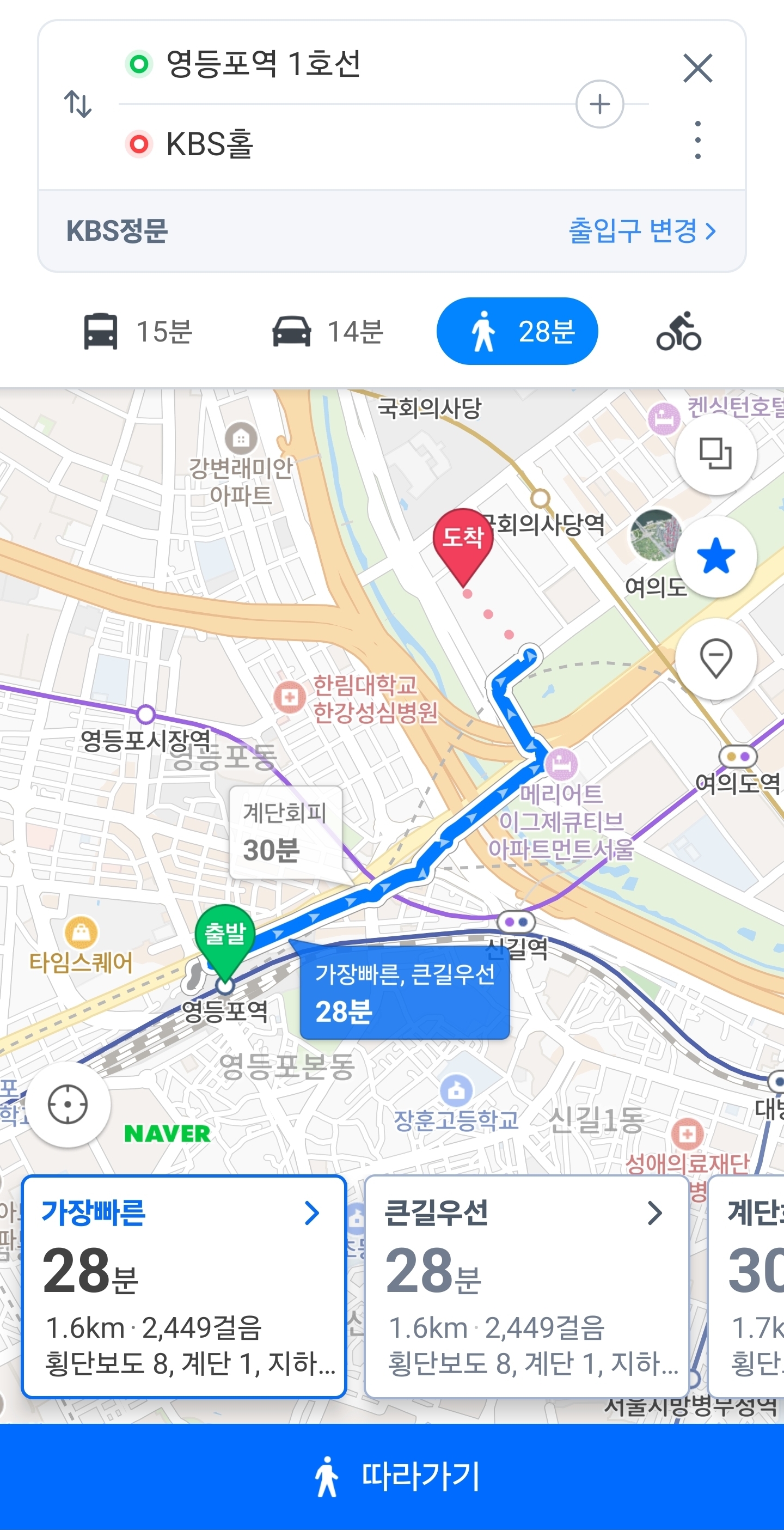 영등포역에서 KBS면 걸어도 28분이라는뎁쇼?