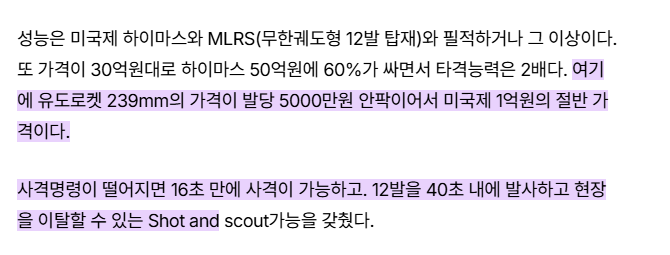 스커드, 현무 같은 탄도탄 종류의 미사일이 비싼거지, 천무 같은 239mm 중구경 유도 미사일의 경우 발당 1억도 안 해요. | 26.03.14 17:56 | | |