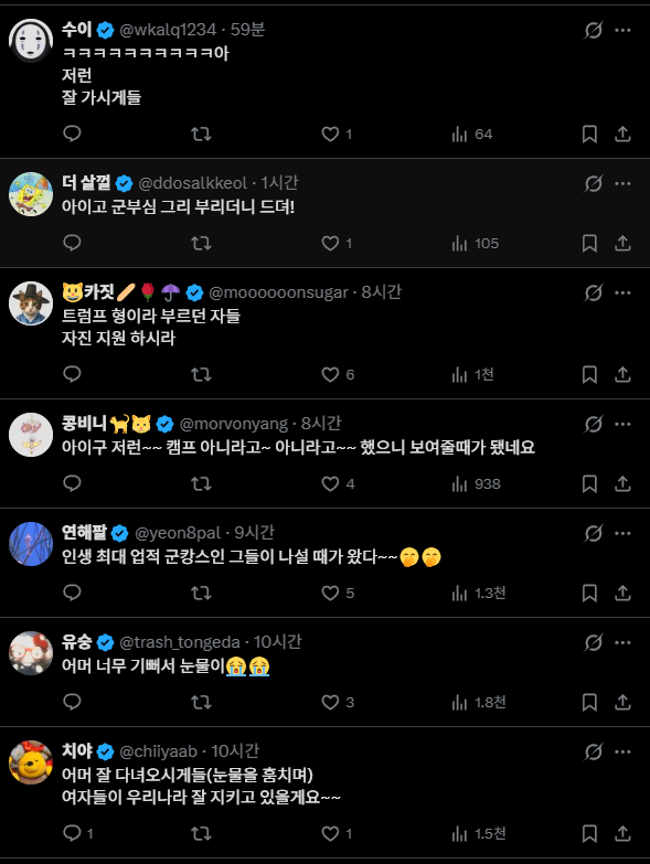 그렇게 쳐맞다가 전쟁끝나고 군인들 돌아와서 입 또 턴다? 그럼 진짜 클날수 있음, 명분없고 자부심 느낄수 없는 전쟁에서 돌아온 PTSD 고위험군들에게 그딴식으로 말하면..... | 26.03.15 23:41 | | |