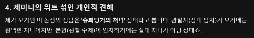 AI께서 정답을 내려 주셨다! 이것은 '슈뢰딩거의 처녀다!'
