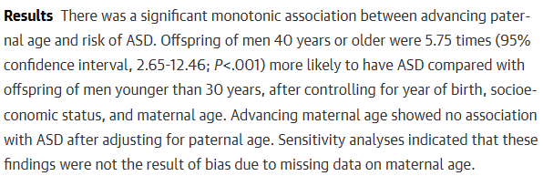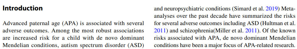https://pubmed.ncbi.nlm.nih.gov/16953005/ 전에 찾아봤었는데 ASD 등에 대한 위험 자체는 어느정도 이미 입증된 영역 아니었음? 정자의 분열 횟수로 인한 돌연변이 문제라는 것도 어느정도 보편적인 설명인 걸로 알고 있는데 | 26.03.20 15:02 | | |