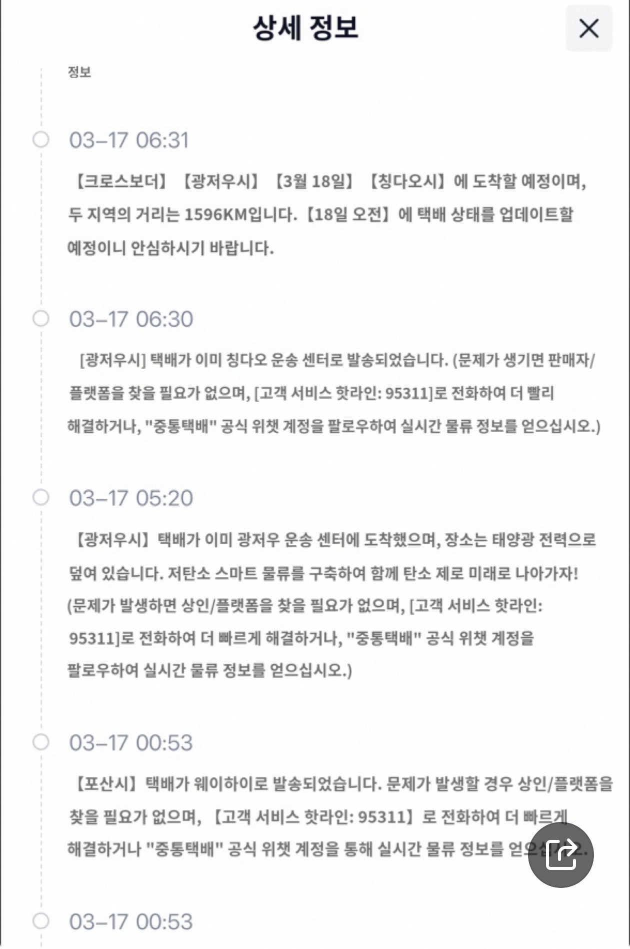 비슷한 거리 체감으로 대륙의 택배 간선차량 이동거리가 있다