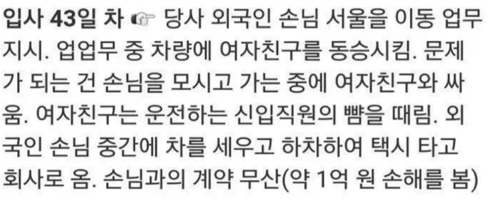 ....? 외국인 손님이 있는데 싸웠다고? ㅋㅋㅋ 미쳤네 근데 그걸 왜 신입에게 시키지 ㄷㄷ | 26.03.25 14:17 | | |