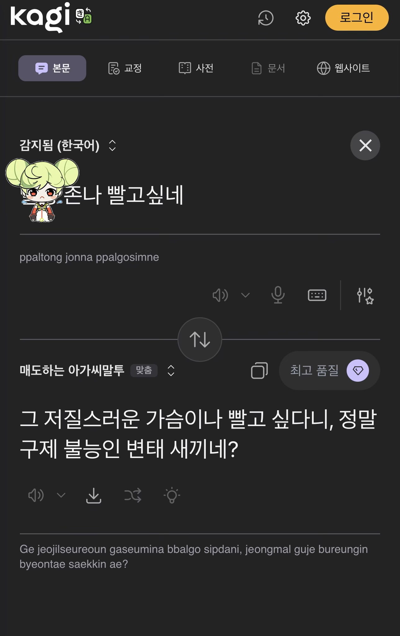 https://translate.kagi.com/?from=%ED%95%9C%EA%B5%AD%EC%96%B4&to=%ED%95%B4%EB%B3%91&text=%ED%8E%98%EB%8F%84%EC%83%88%EB%81%BC+%EB%92%A4%EC%A0%B8%0A | 26.03.25 14:44 | | |
