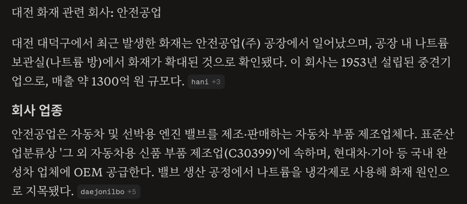 공업사니까 뭐 당연히 공정에 씀 원래 저장소/취급소, 제조소 허가가 별도인데 저장소 허가만 받고 몰래 정제소까지 지은거 | 26.03.25 18:02 | | |