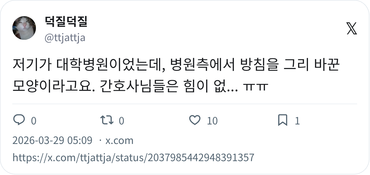 대학병원이라 다른 곳을 못 갈 것 같음 | 26.03.29 12:15 | | |